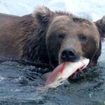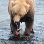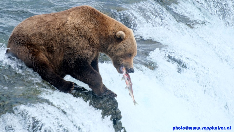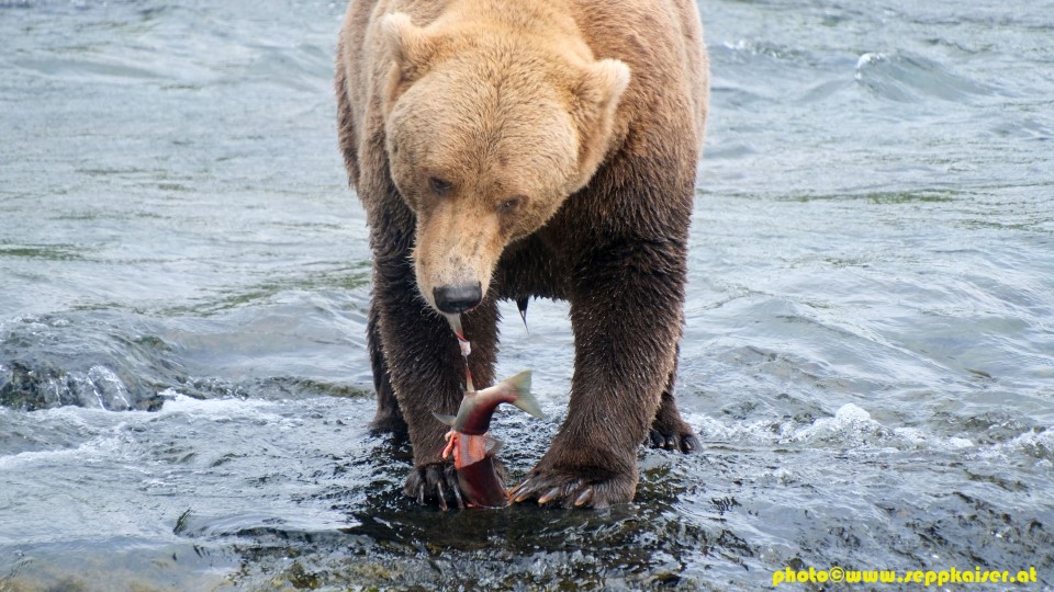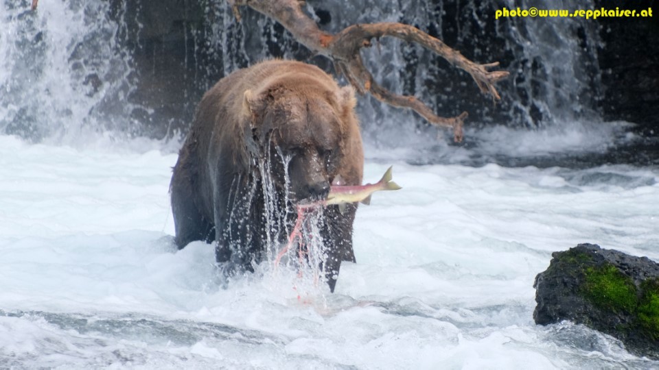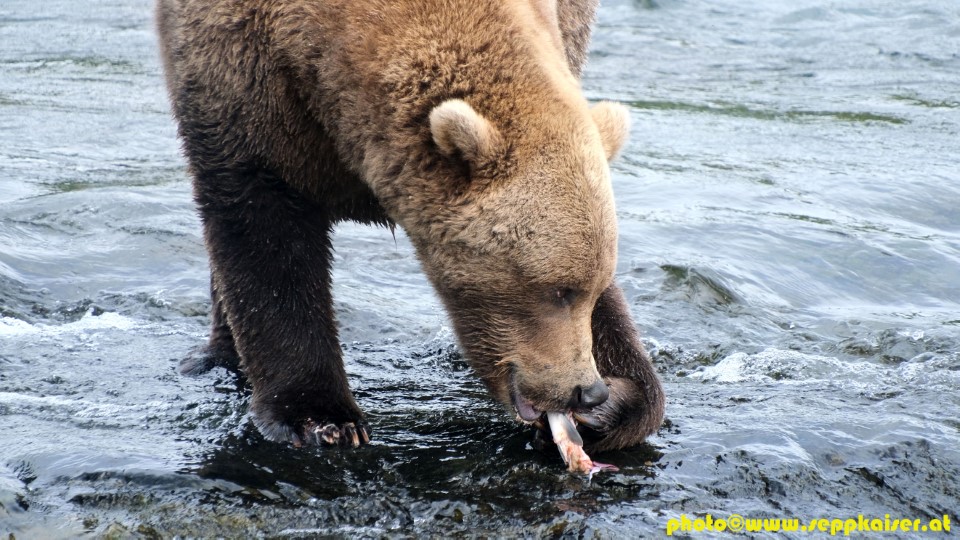 Alaska – Braunbär frisst Lachs an den Brooks Falls im Katmai NP