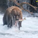 Alaska – Braunbär mit Lachs an den Brooks Falls im Katmai NP