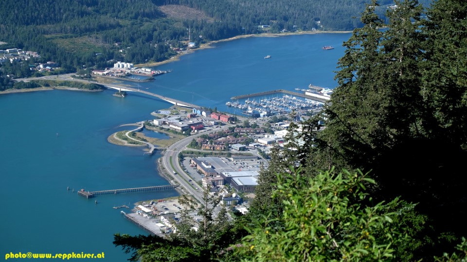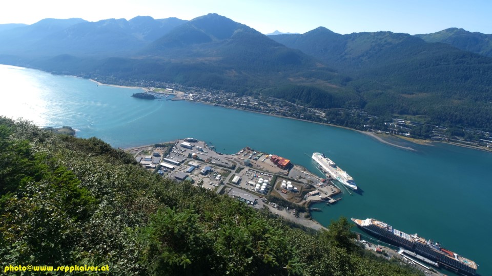 Alaska – Blick auf den Gastineau Channel und Alaskas Hauptstadt Juneau vom Mt. Roberts aus